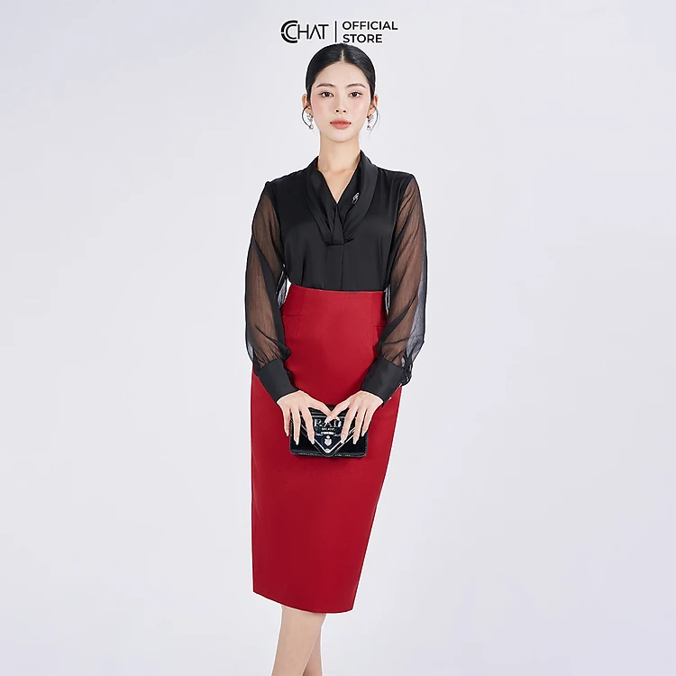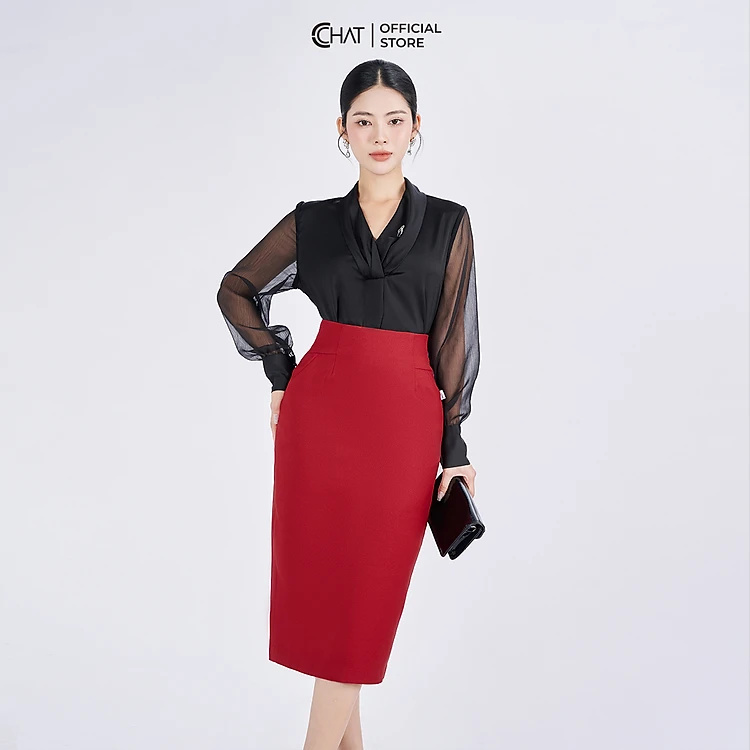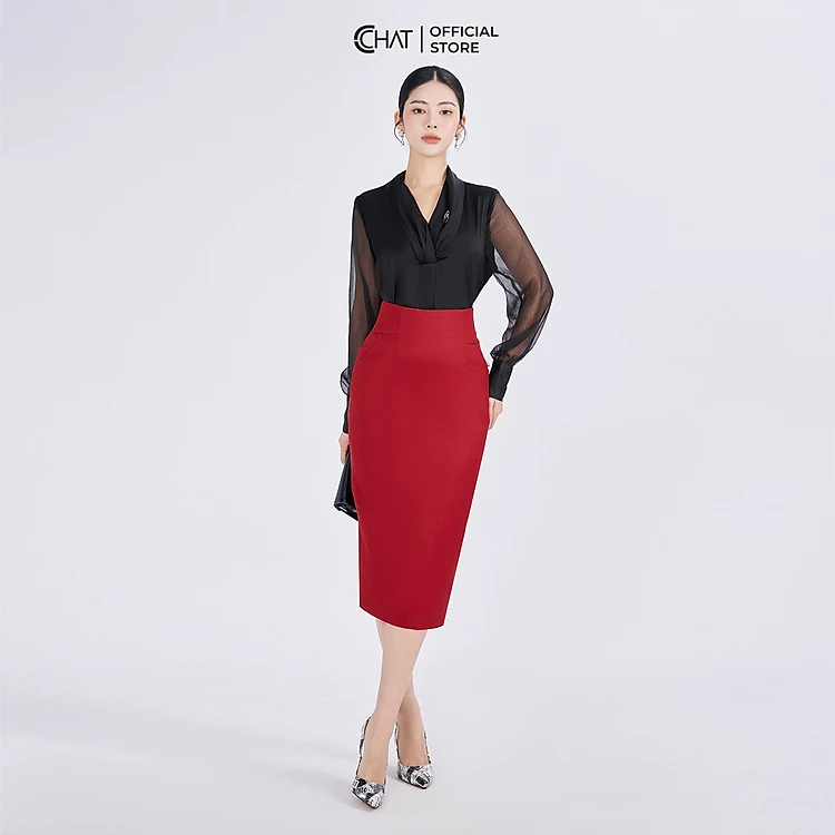 Chân Váy Dáng Bút Chì Cạp Bổ Chất Tuytsi Cao Cấp Mềm Mịn 93CDS2009OT