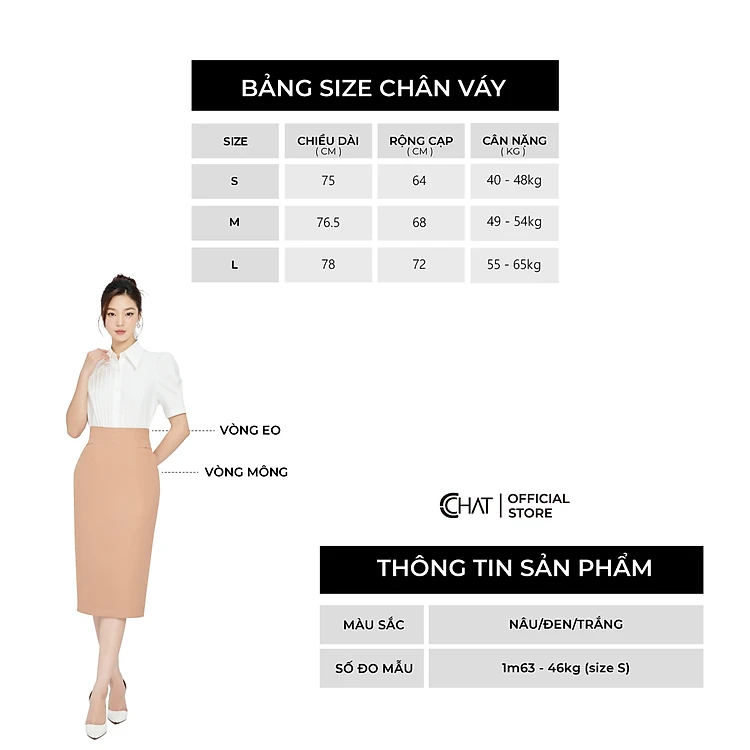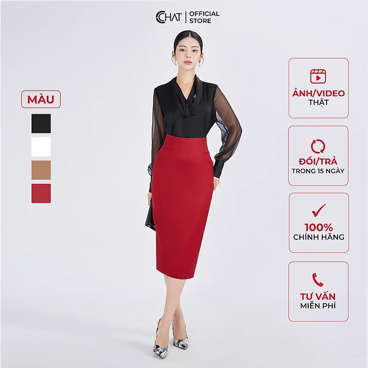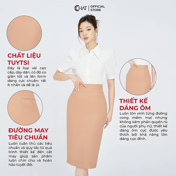 1. Thông tin sản phẩm: Chân Váy Dáng Bút Chì Cạp Bổ Chất Tuytsi Mịn